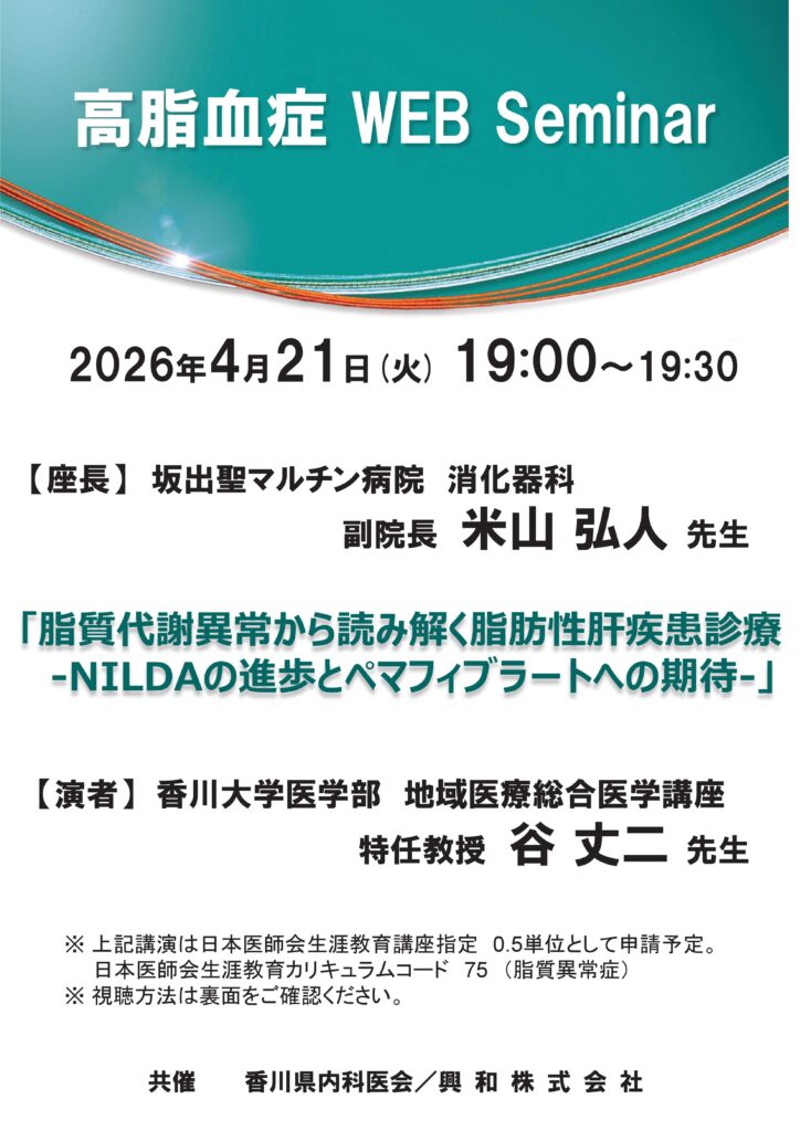 【講演】「脂質代謝異常から読み解く脂肪性肝疾患診療‐NILDAの進歩とペマフィブラートへの期待-」